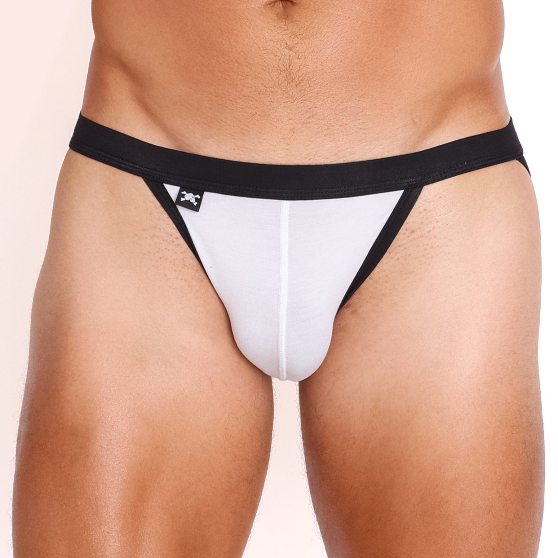 Our new addition to Just the Bones collection comes in a super soft & lightweight modal elastane fabric.  This Skull & Bones sport brief silhouette features a contour pouch, a self fabric waistband, and flatlock stitching throughout for stretchability and uninhibited movement.  Features our signature logo label in black on the front.
